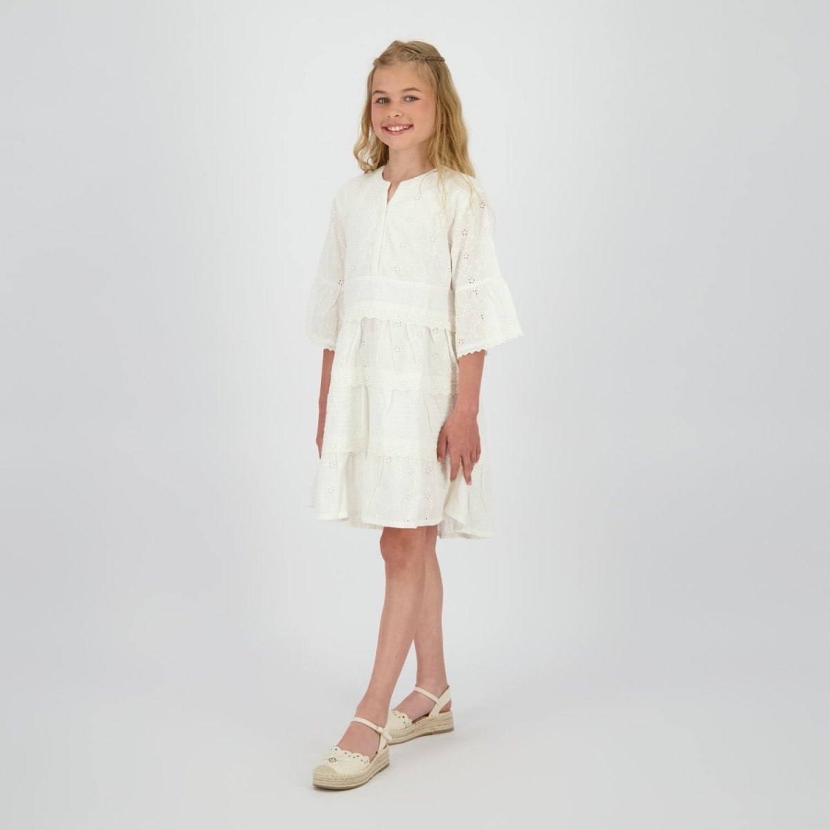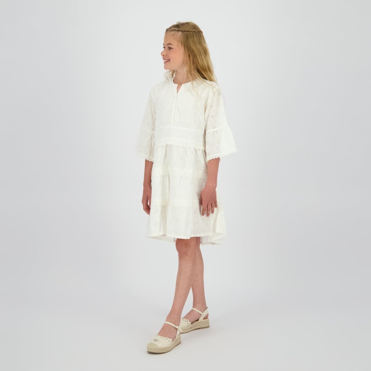 Soft, elegant and effortlessly wearable — the Vingino Girls Midi Dress Pavia in Coconut Milk is a timeless addition to any girl’s wardrobe.