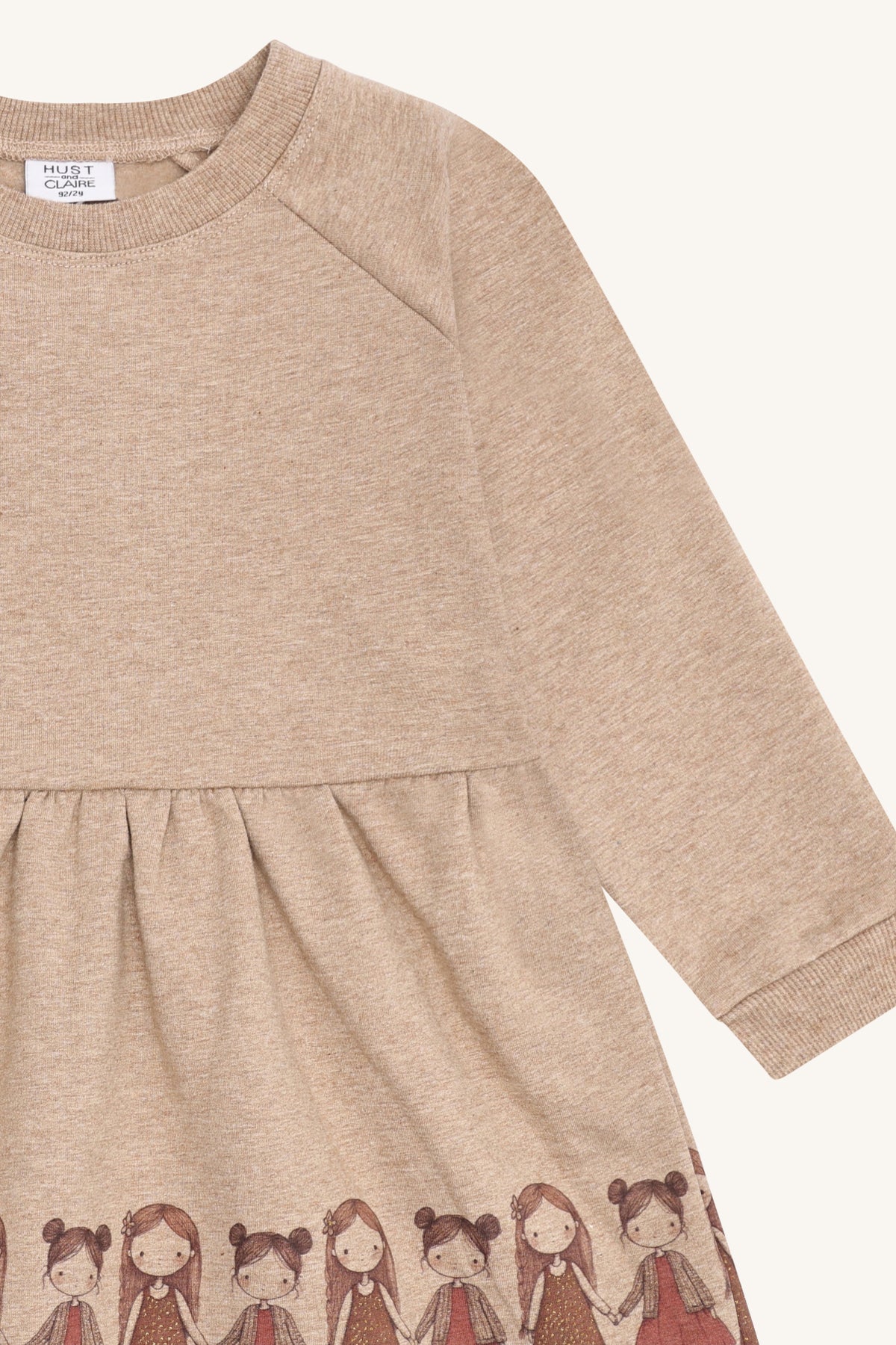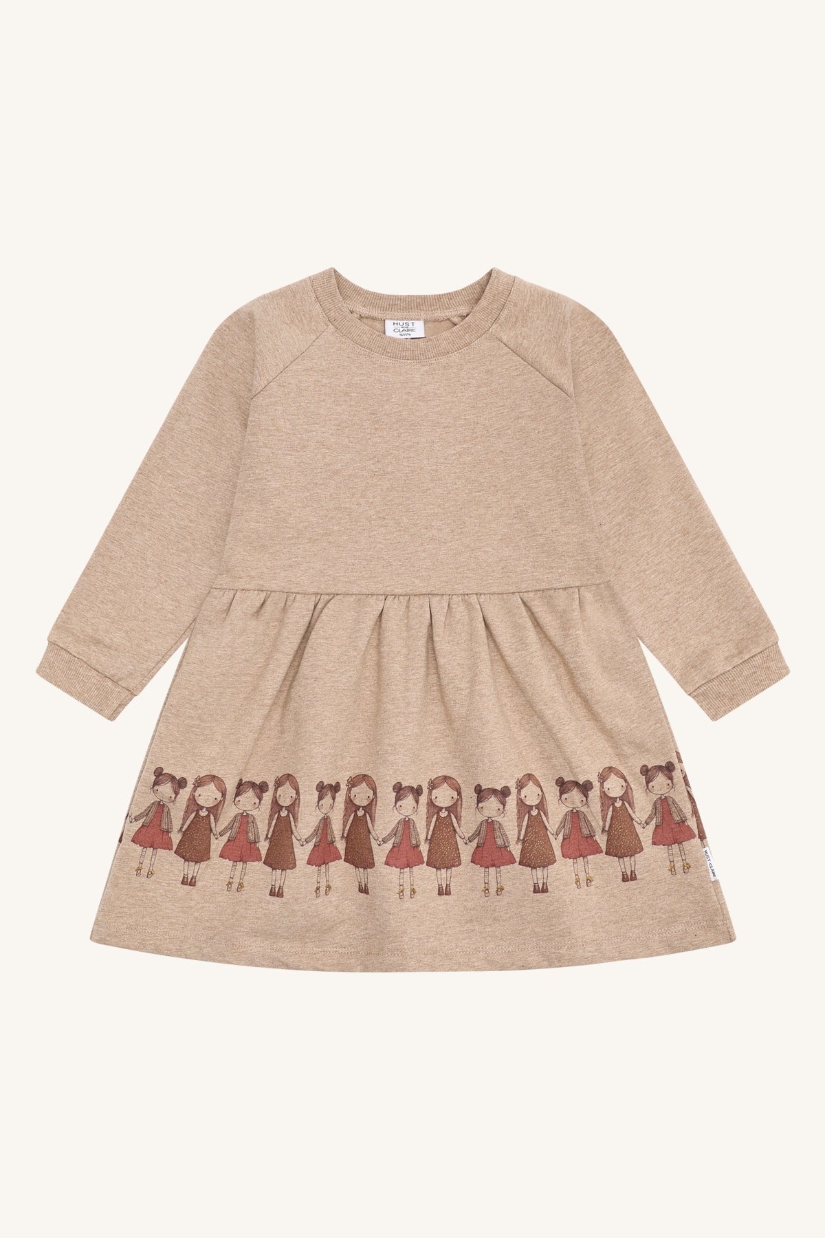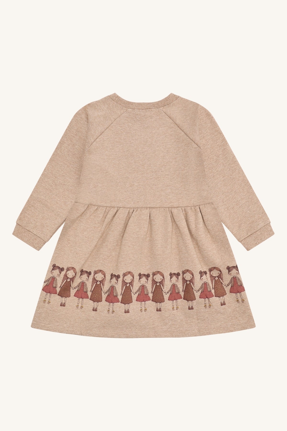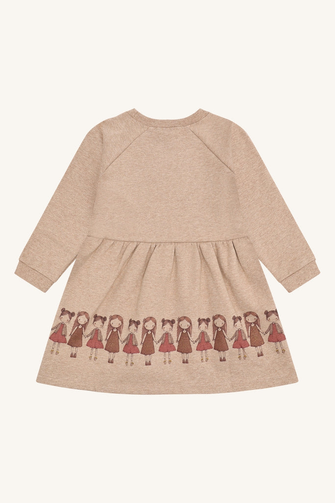 • Girls’ long-sleeve dress in Friendship Biscuit colour