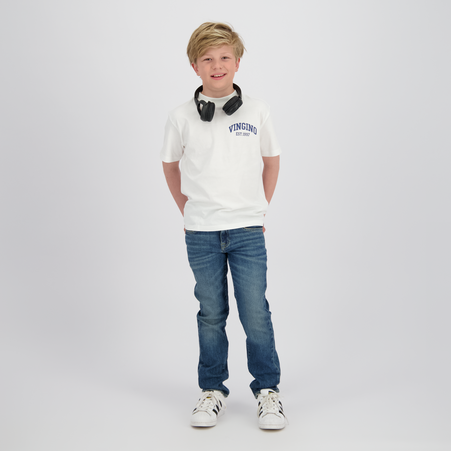 The fresh Cloud White colour creates a crisp, versatile look that pairs effortlessly with jeans, shorts or joggers. Finished with bold Vingino Icon branding, this T-shirt delivers a confident, streetwear-inspired style boys love.