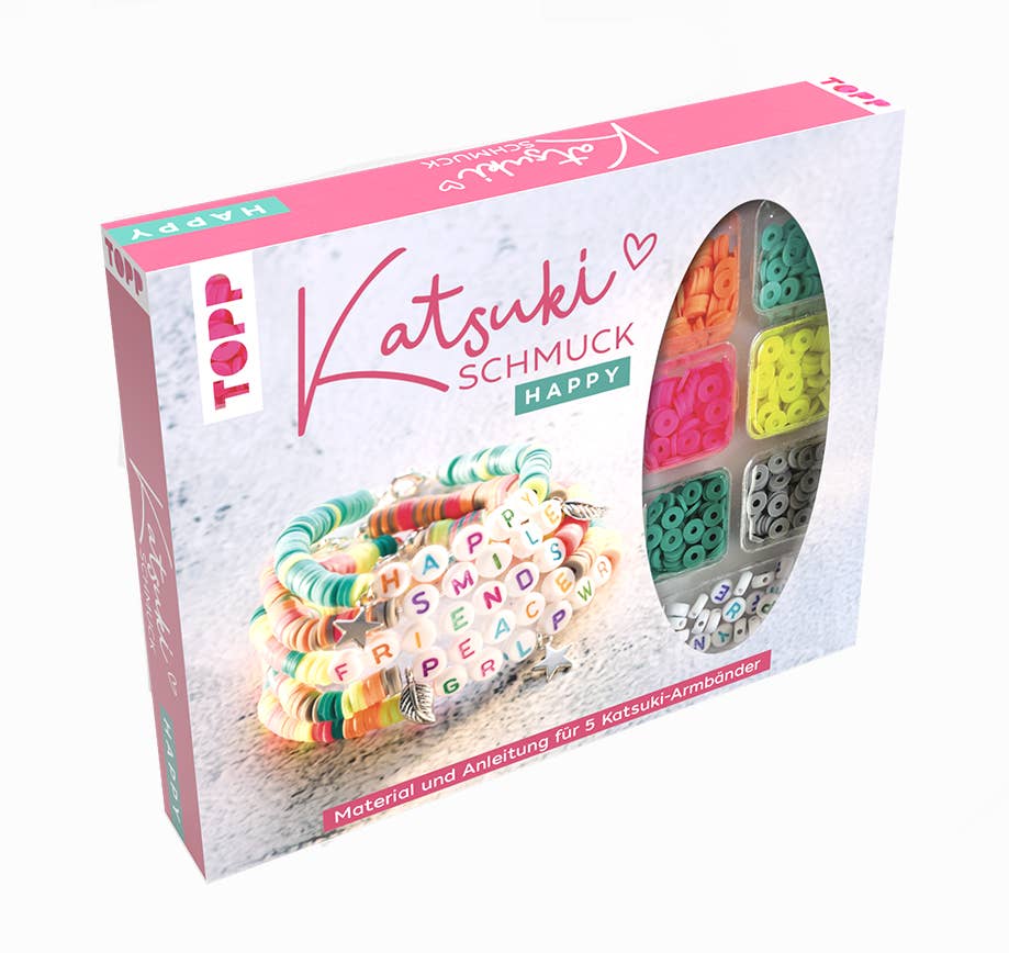The Katsuki Jewelry Set with Alphabet Beads – Happy makes creating your own message bracelets fun, easy and beautifully colourful. With 600 beads in 6 trendy colours, you can design up to five personalised bracelets, each featuring uplifting words like HAPPY, SMILE, FRIENDS, PEACE and GRL PWR.