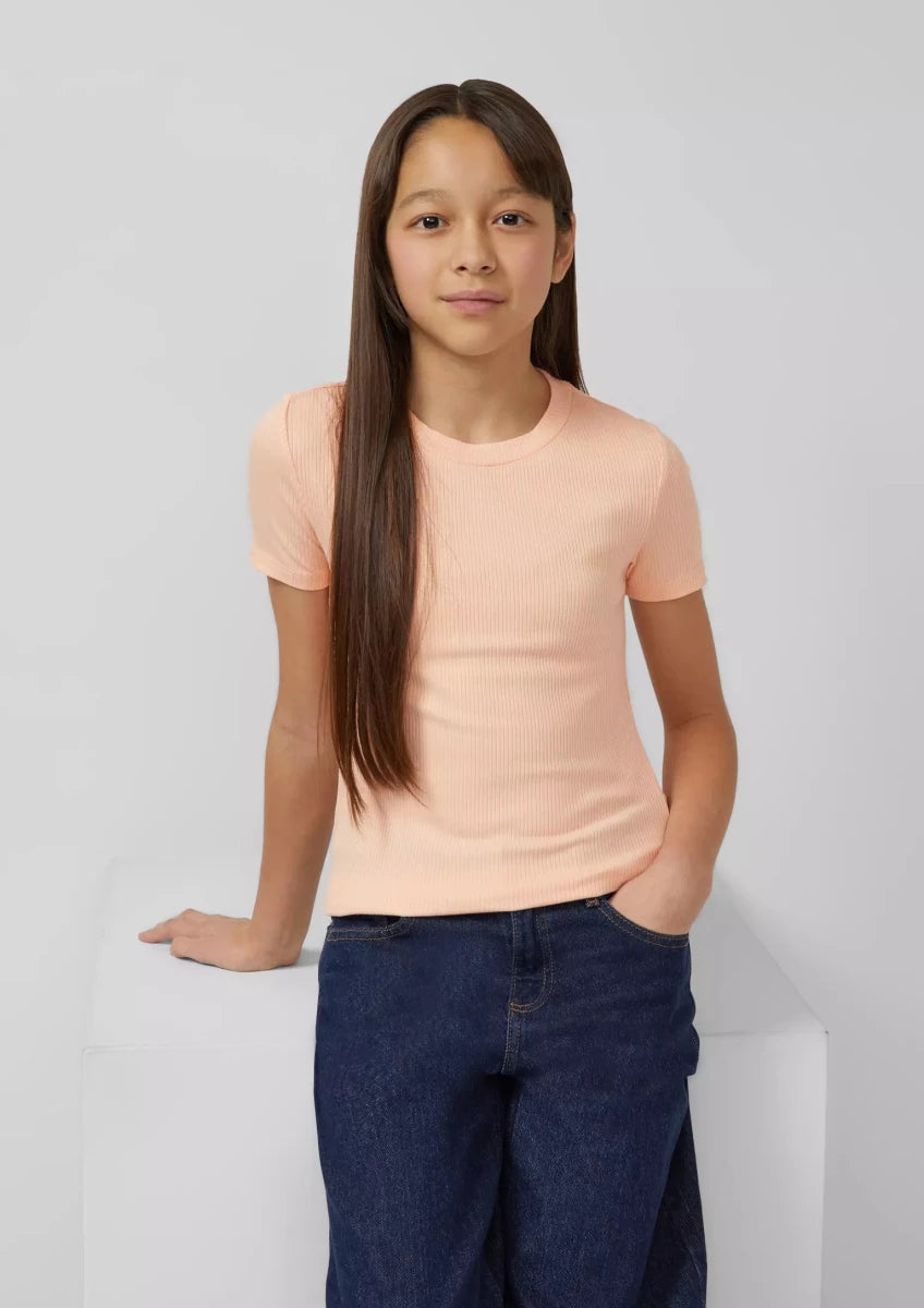 The s.Oliver Girls Ribbed T-Shirt in Orange is a soft and versatile essential designed for everyday comfort. Made from a smooth viscose-blend rib fabric, this T-shirt feels lightweight and gentle on the skin while offering natural stretch for easy movement throughout the day.