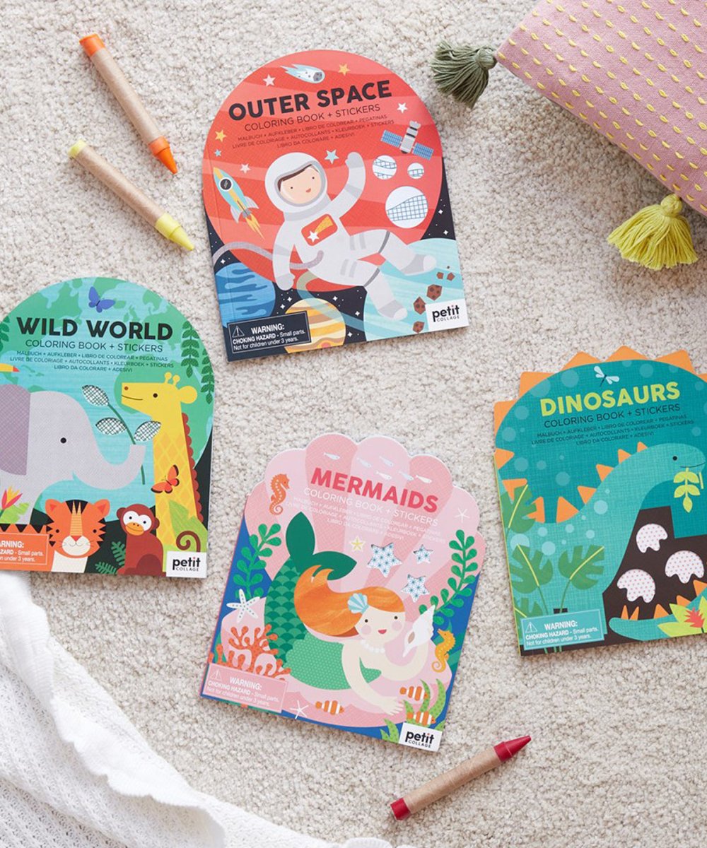 The Petit Collage Coloring Book with Stickers – Dinosaurs is a rawr-some way to spark creativity! Featuring cool Jurassic scenes with favourite dinos like T-Rex and pterodactyls, it promises hours of fun for little explorers.