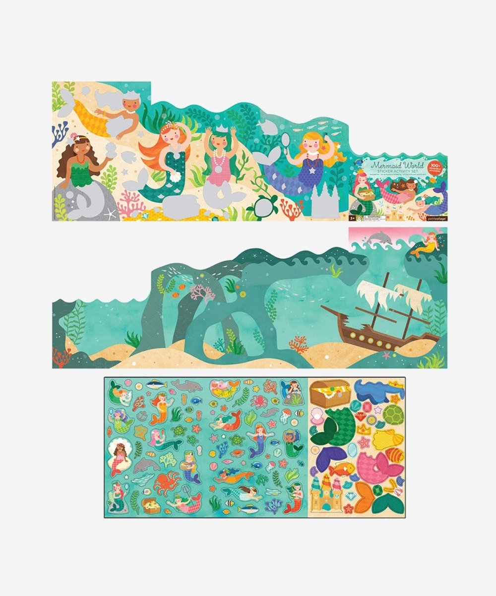The Petit Collage Sticker Activity Set – Mermaid World is a magical way to spark children’s creativity. Featuring large double-sided foldouts with colourful under-the-sea illustrations, kids can use over 100 detailed stickers to bring the ocean scenes to life – or invent their own mermaid adventures.