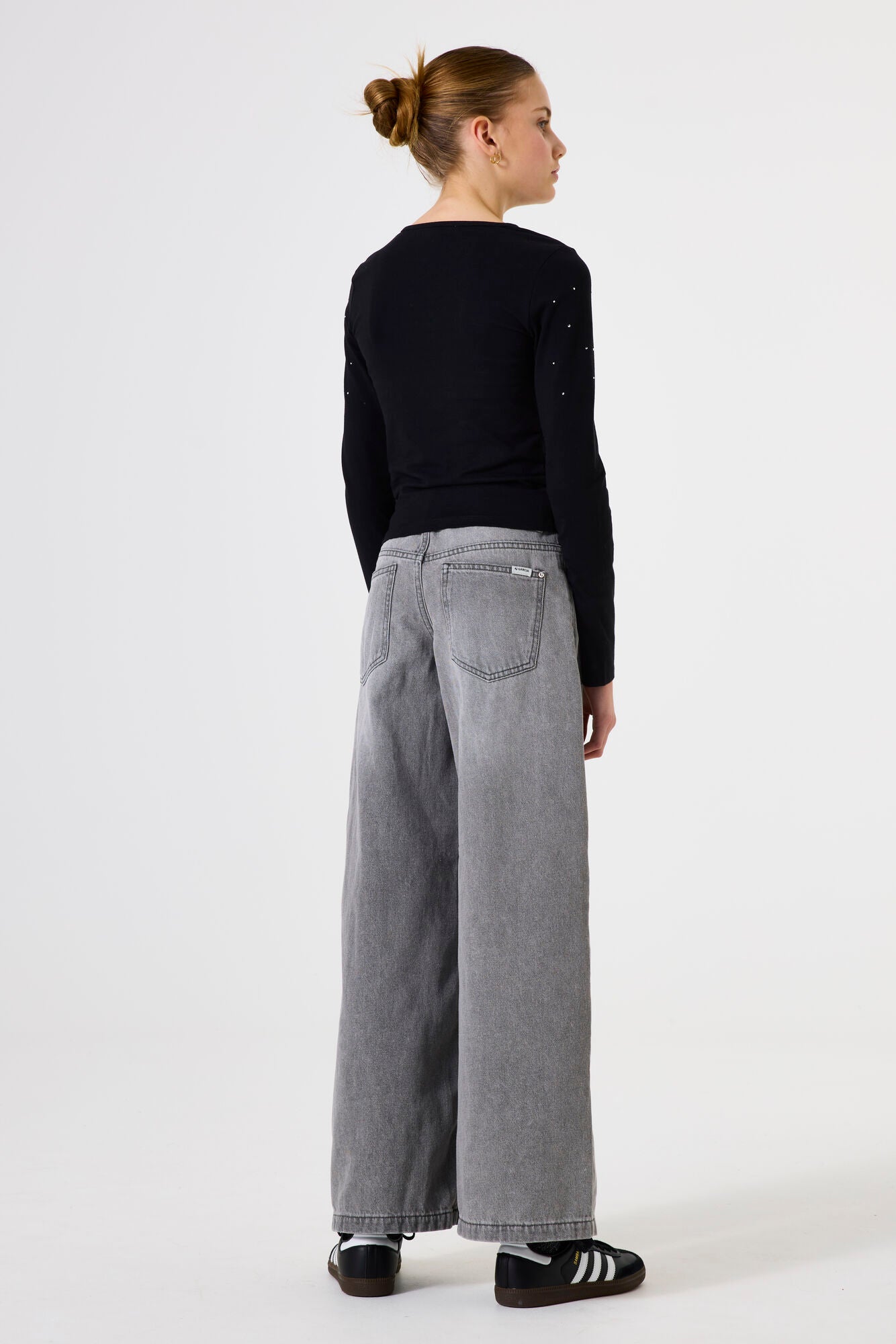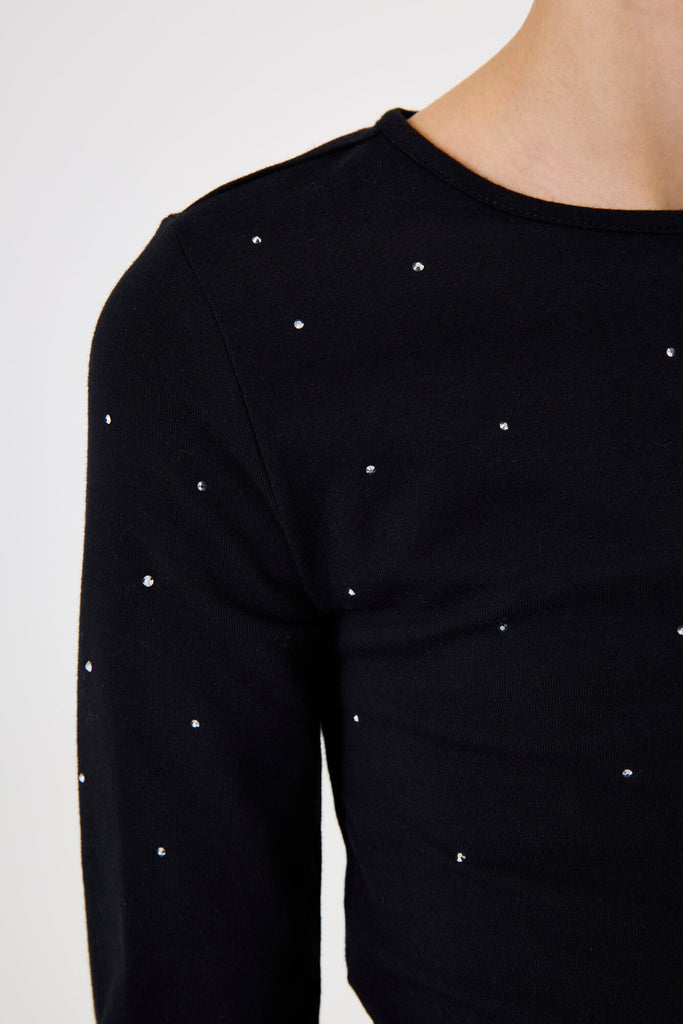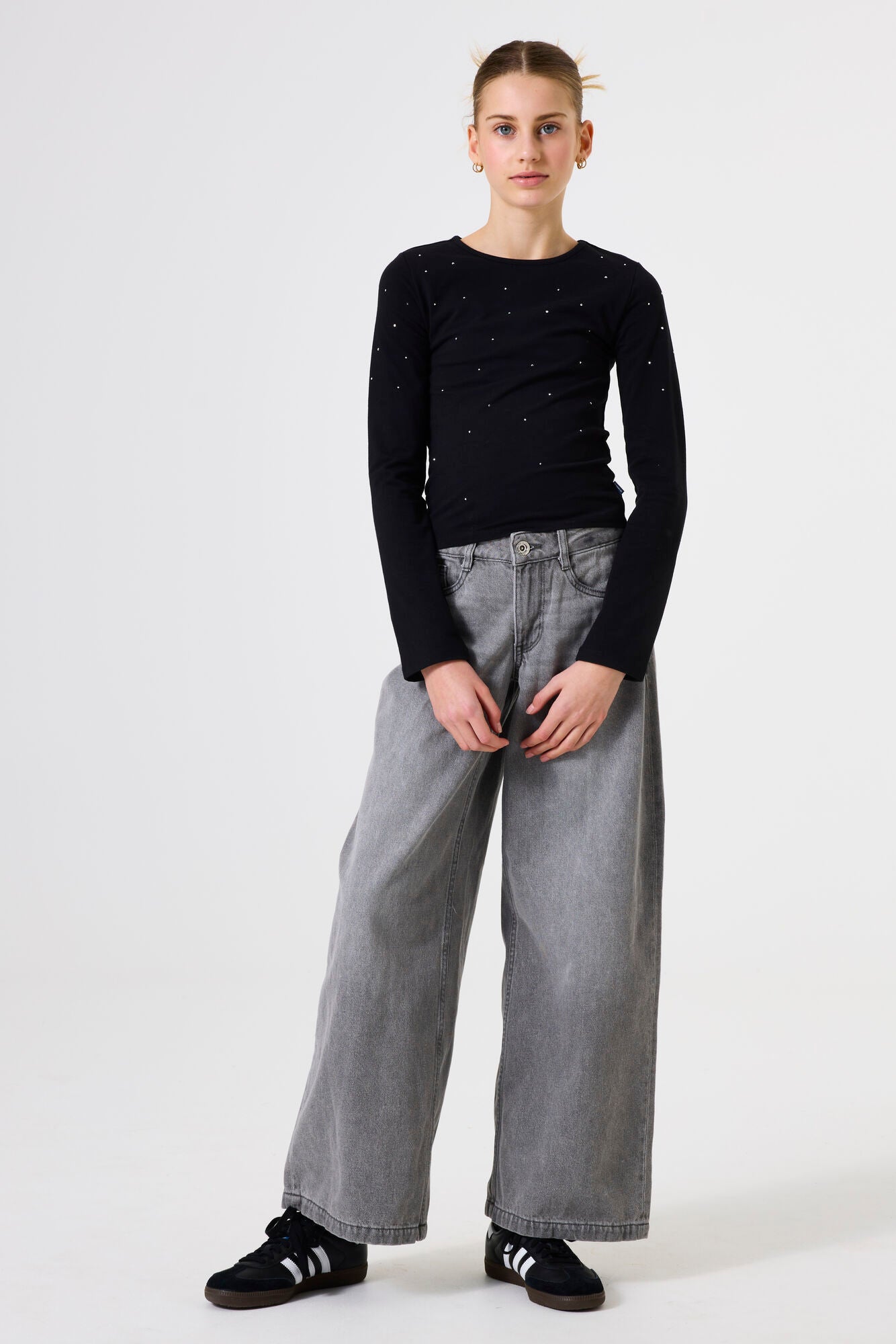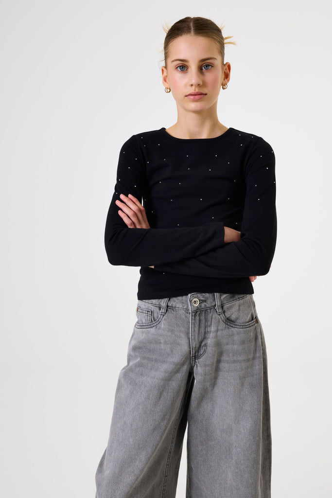 The off black shade gives it a cool, modern look, while the delicate Strass details add a subtle shimmer — making this top easy to dress up or keep casual. A versatile piece for school, weekends or parties.