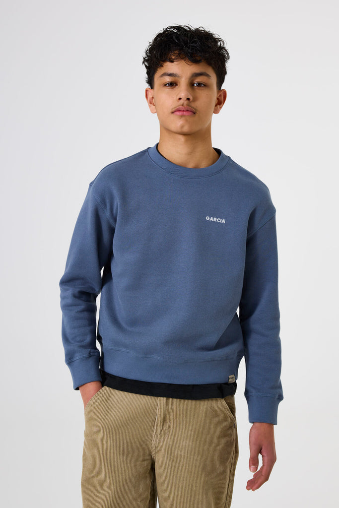 The Garcia Boys Teens Sweater – Jay Blue is a soft and comfortable everyday essential. Made from a cozy cotton blend, it offers a relaxed fit that’s perfect for school, weekends and casual outings.