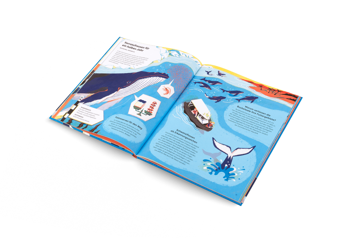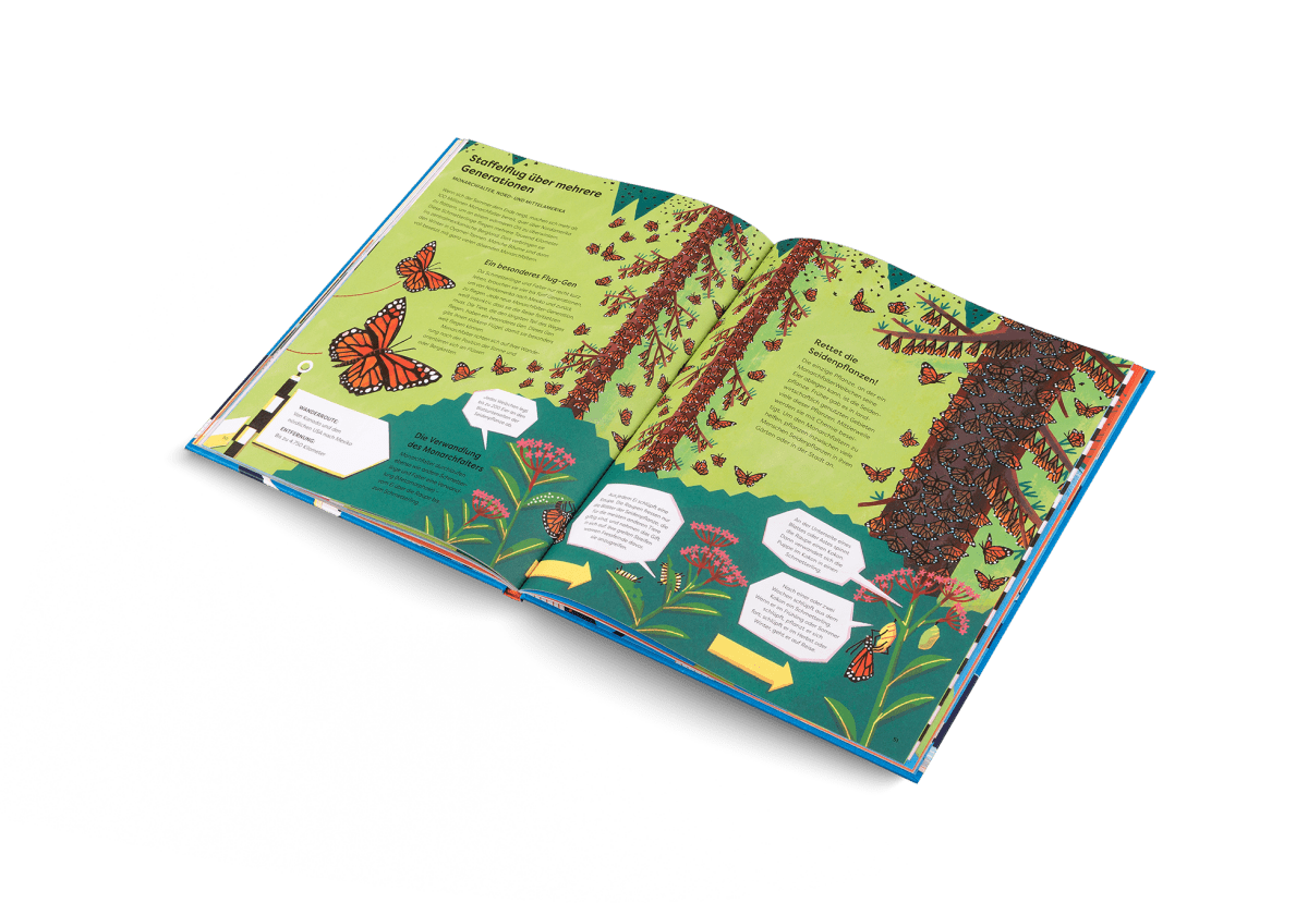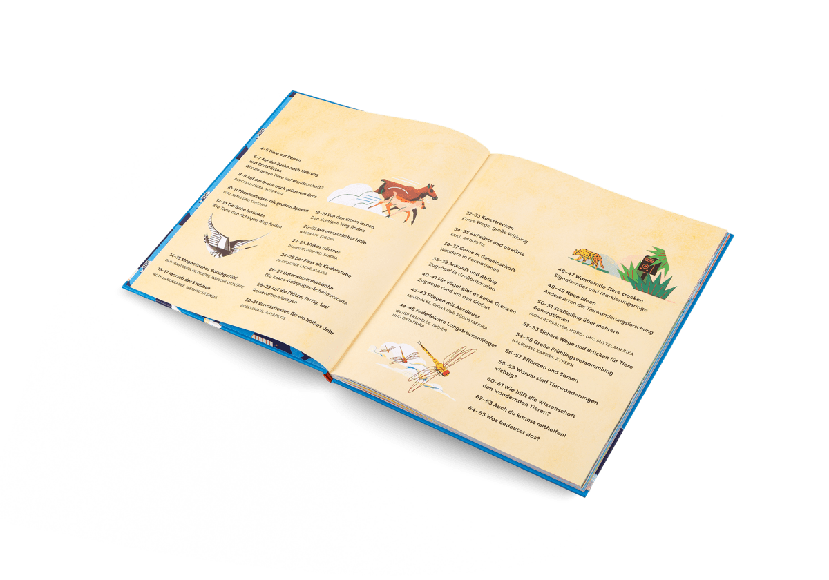 In Immer unterwegs – Die großen und kleinen Wanderungen der Tierwelt entdecken junge Leserinnen und Leser die faszinierendsten Tierwanderungen unseres Planeten. Von Buckelwalen, die jedes Jahr Tausende Kilometer von der Antarktis nach Costa Rica zurücklegen, bis hin zu Libellen, die den Indischen Ozean ohne Pause überqueren – dieses Buch macht die Welt der Tiermigration lebendig und greifbar.