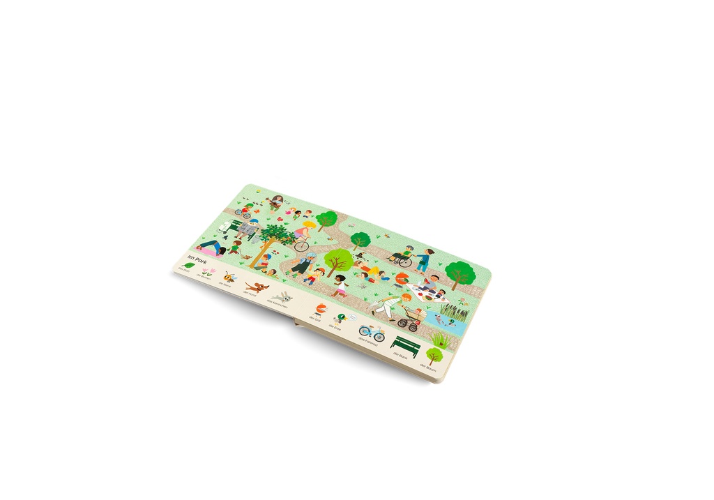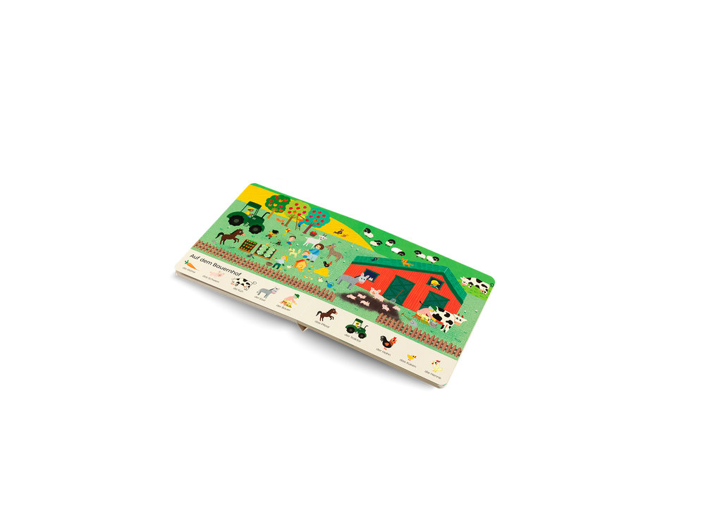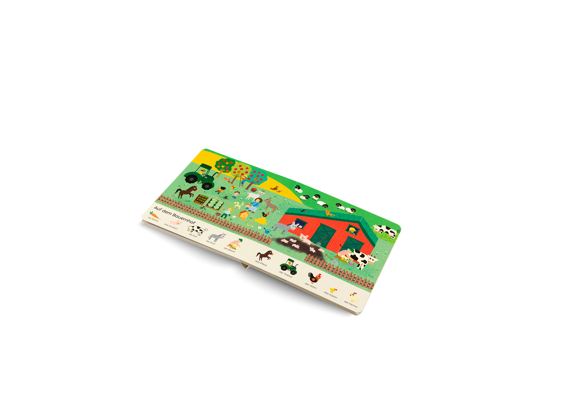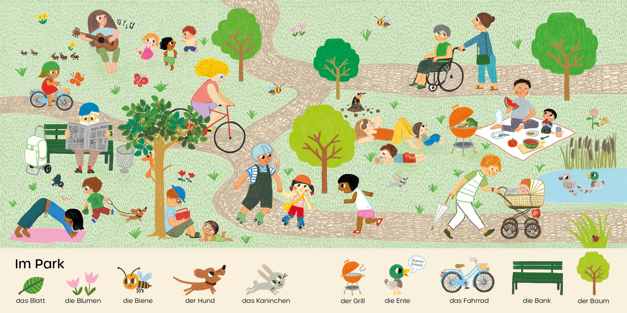 Was steht dort auf dem Esstisch und was ziehe ich heute an? Wem begegne ich auf dem Spielplatz und welche Tiere kenne ich schon im Tierpark? Zuhause, in der Kita oder draußen auf der Straße – überall gibt es so viel zu entdecken. In diesem Buch erkennen Kinder die Gegenstände aus ihrer täglichen Lebenswelt wieder und lernen spielerisch ihre Namen kennen. Farbenfroh illustrierte Szenen im Supermarkt, beim Kinderarzt, im Park oder im Kinderzimmer laden zum Ausdenken eigener Geschichten ein.
