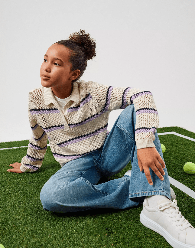 Bequem, praktisch und einfach zu kombinieren – dieser Pullover ist ein unverzichtbares Basic für jede Mädchengarderobe.