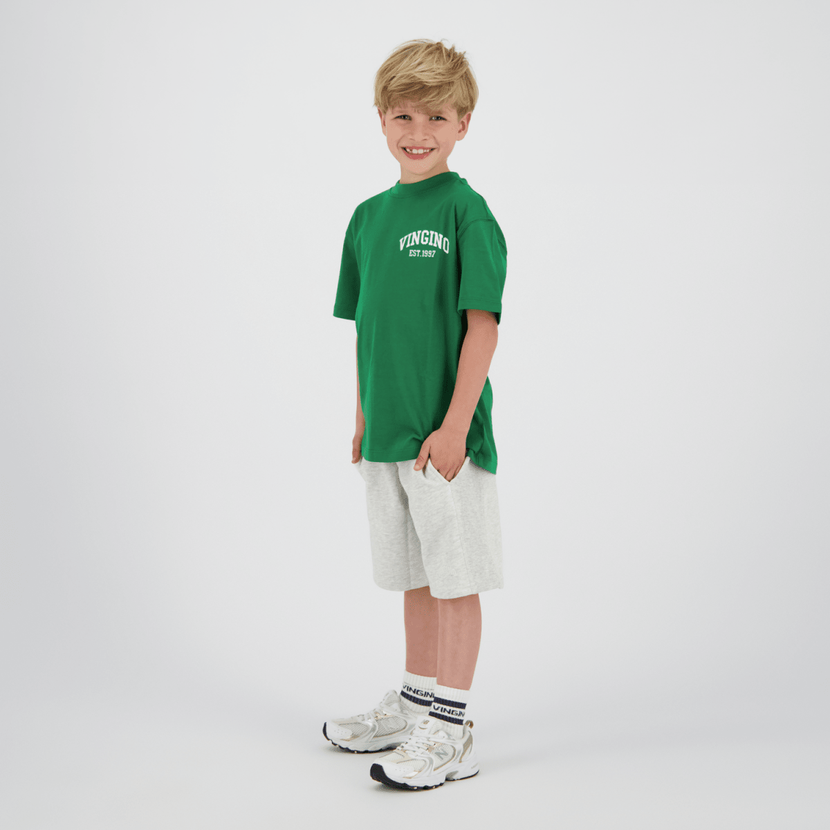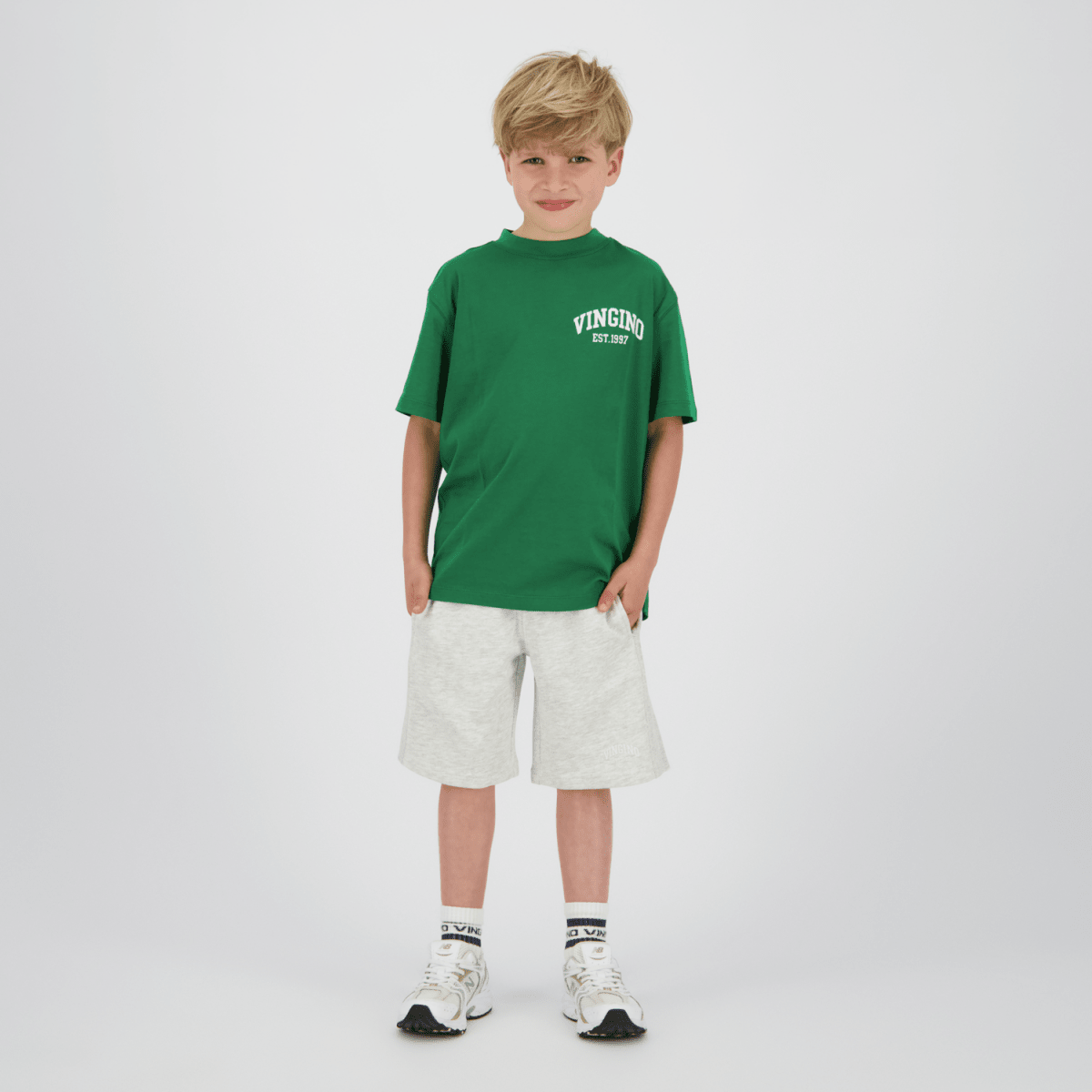 Die moderne Farbe Fearless Grey Melee sorgt für einen coolen, vielseitigen Look, der sich perfekt mit T-Shirts, Hoodies oder Sweatshirts kombinieren lässt. Abgerundet mit den charakteristischen Vingino Icon-Details verleihen diese Shorts einen selbstbewussten, sportlichen Stil, den Jungen lieben.