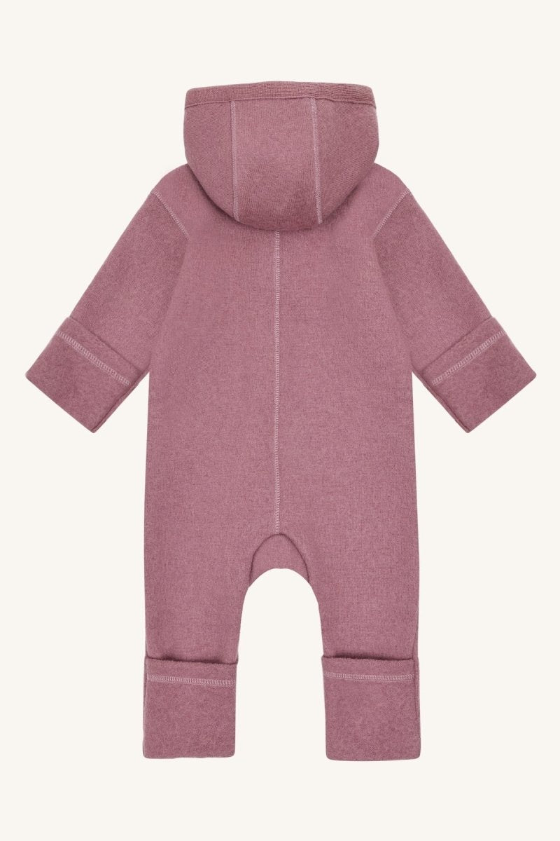 Der charmante, zarte Mauveton verleiht diesem Anzug eine süße und feminine Note und macht ihn sowohl praktisch als auch schön. Dank der durchdachten Konstruktion mit schützender Kapuze, durchgehendem Reißverschluss und umklappbaren Ärmelbündchen bietet er Wärme, Komfort und Bequemlichkeit – perfekt für Kinderwagenfahrten, die Kita oder zum Spielen im Freien.