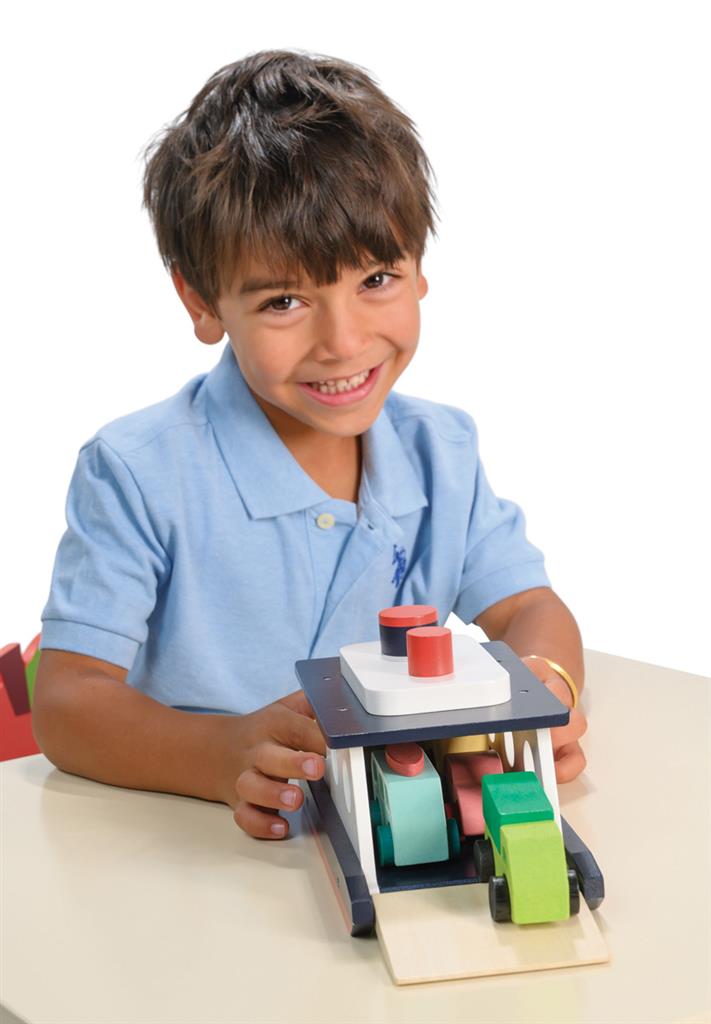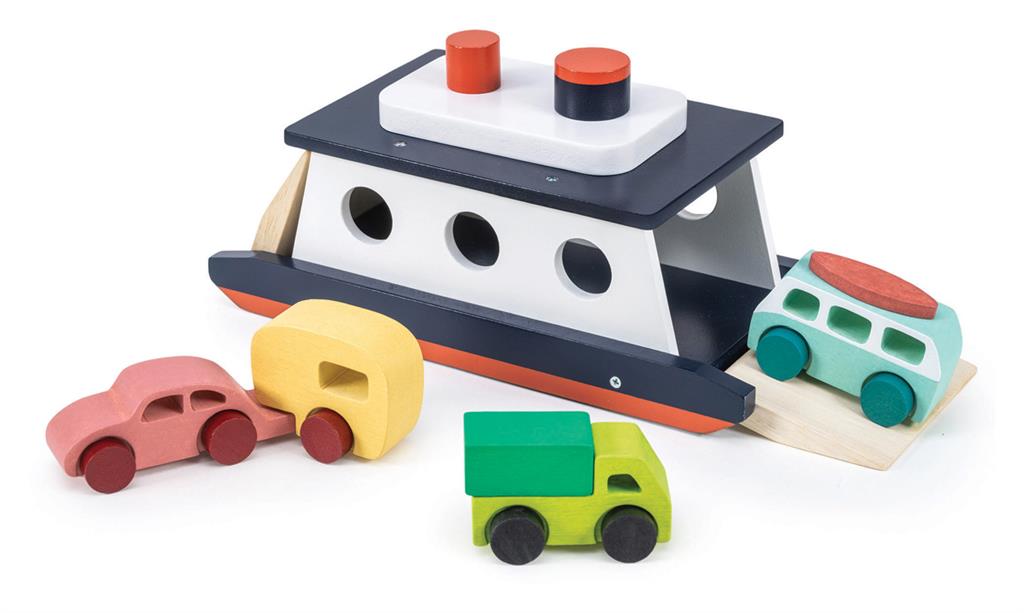 Dieses robuste Spielzeug ist einer echten Fähre nachempfunden und ermöglicht Kindern, Holzautos zu be- und entladen, sie über imaginäre Meere zu transportieren und unzählige Reisegeschichten zu erfinden.