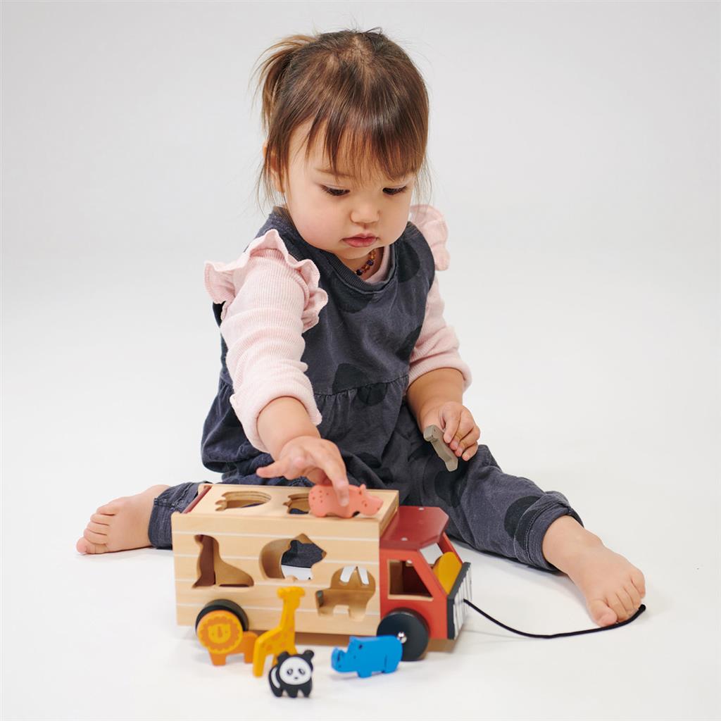 This sturdy safari vehicle comes with a selection of wooden animals, inviting children to load them onto the truck, transport them across imaginary landscapes and create their own animal rescue missions.