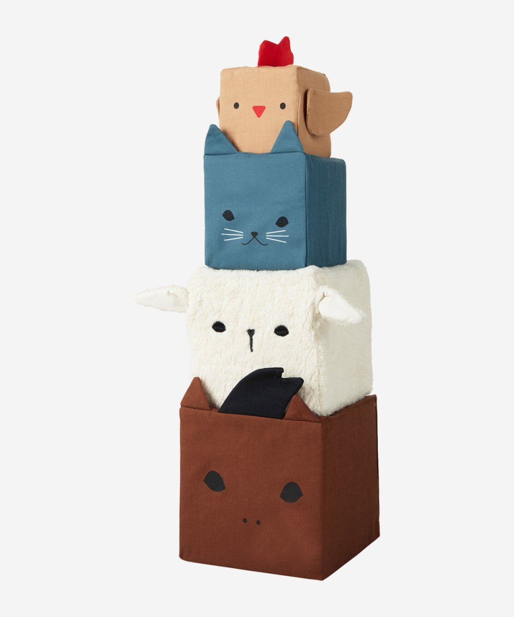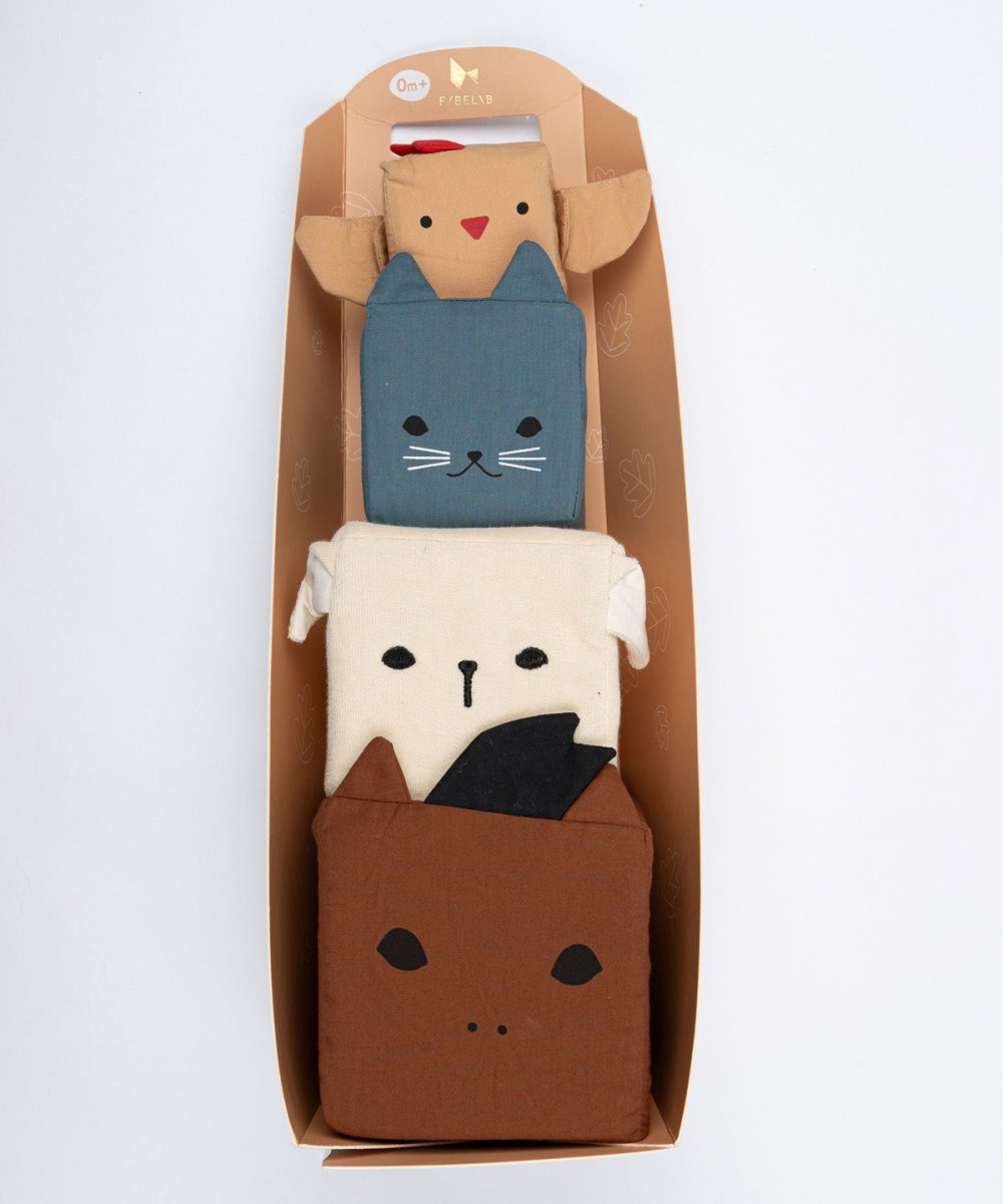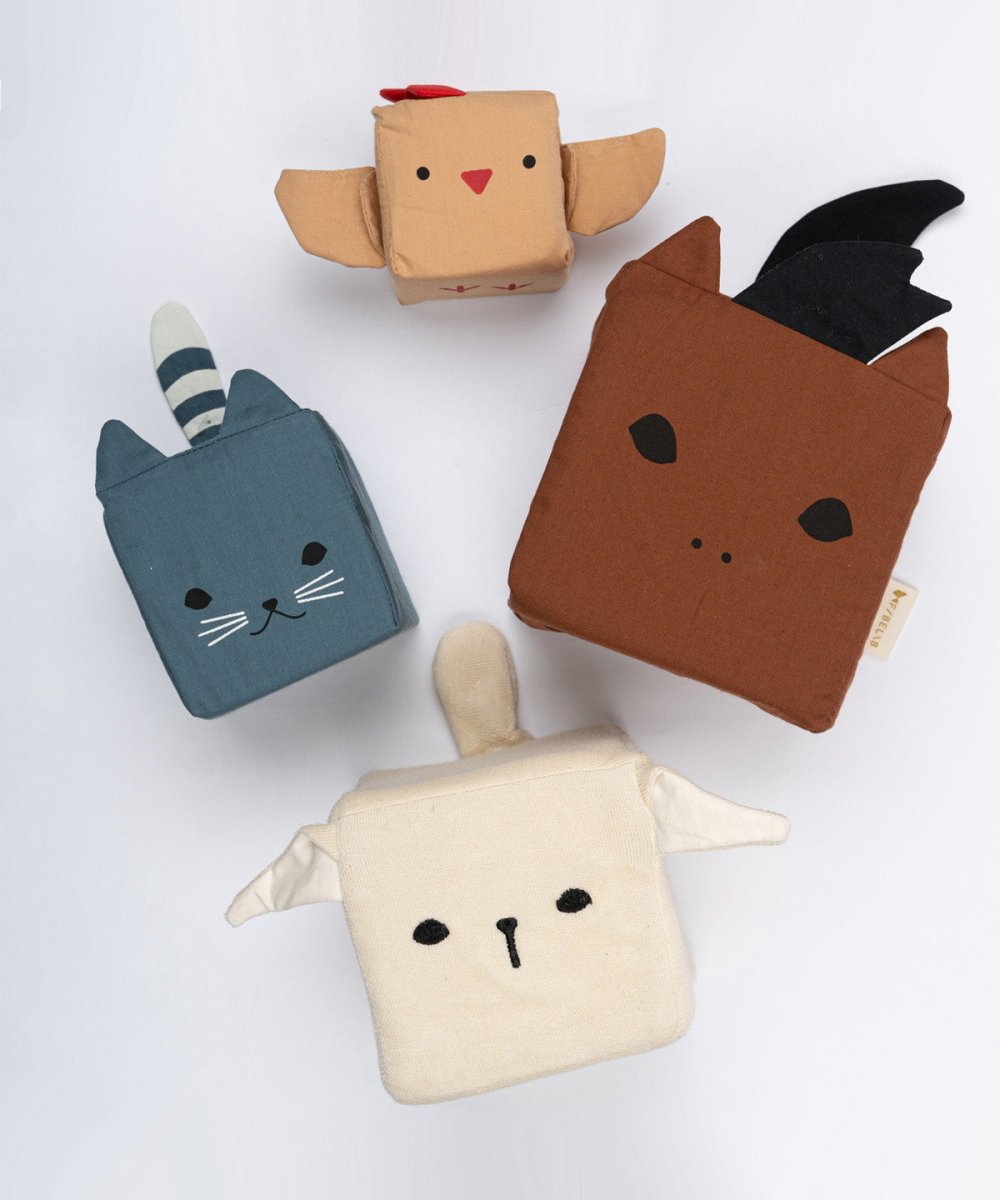 Made from organic cotton with baby-safe materials, these soft blocks are perfect for tummy time, play mats or on-the-go entertainment. They help develop fine motor skills, hand-eye coordination and sensory awareness while introducing babies to cute farm friends.